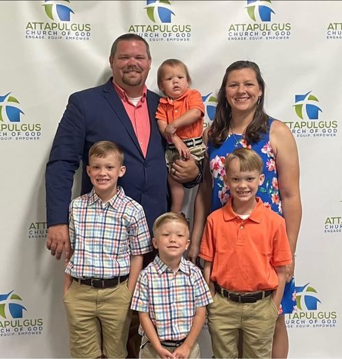 Jenny Gleeson serves alongside her husband, Brad, as senior pastors of Attapulgus Church of God where they have served for the past 4 years. They have been in ministry for 15 years and have been married for 12 years. Jenny teaches Children’s Church and helps with media. In addition, she has been teaching for 11 years, currently teaching Kindergarten, and is a full-time student working towards a master’s degree in education. Brad and Jenny have four boys, Kyler and Keaton (9), Braden (5), and Jaxon (1). Jenny enjoys spending time with family and going to the beach.